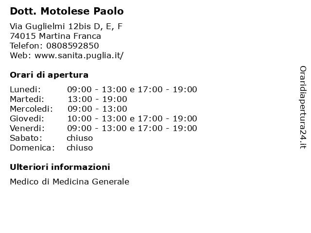 | Lunedi | 09:00-13:00 e 17:00-19:00 |