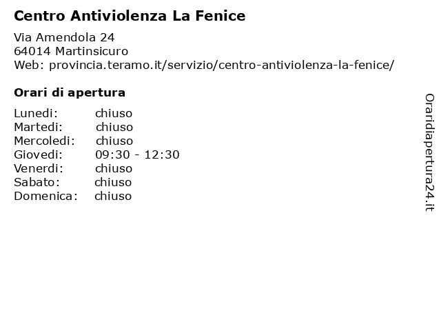 1 Centro Antiviolenza La Fenice (distanza: 9,38 km) Viale Roma 41, 64015 Nereto anti, antiviolenza, centro, fenice, persone, protezione, sportello, violenza 2 La Fenice Sas Di Liang Youying & c. (distanza: 0,41 km) Via Pagliaccetti 10, 64014 Martinsicuro catering, fenice, liang, ristoranti, youying 3 La Fenice (distanza: 2,40 km) Via Maternità 28, 64011 Alba Adriatica alba, fenice, giochi, la, scommesse 4 La Fenice Sas Di Fabio Santomo & c. (distanza: 5,62 km) Via Gorizia 6, 64018 Tortoreto alimentari, comm, dett, fabio, fenice, prod, santomo, vari 5 Ristorante Braceria La Fenice (distanza: 5,90 km) Via Enzo Ferrari 34, 64018 Tortoreto braceria, fenice, gastronomia, la, ristorante 6 Ristorante La Fenice (distanza: 5,90 km) Via Enzo Ferrari 34, 64018 Tortoreto catering, fenice, lazzari, ristorante, ristoranti, tina |
