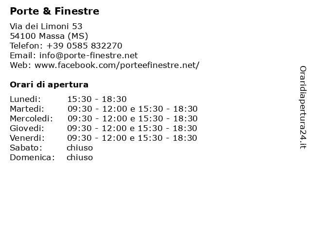 | Venerdi | 09:30-12:00 e 15:30-18:30 |