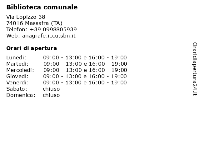 Lunedi | 09:00-13:00 e 16:00-19:00 |