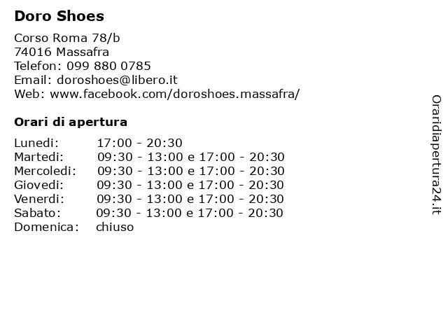 | Sabato | 09:30-13:00 e 17:00-20:30 |