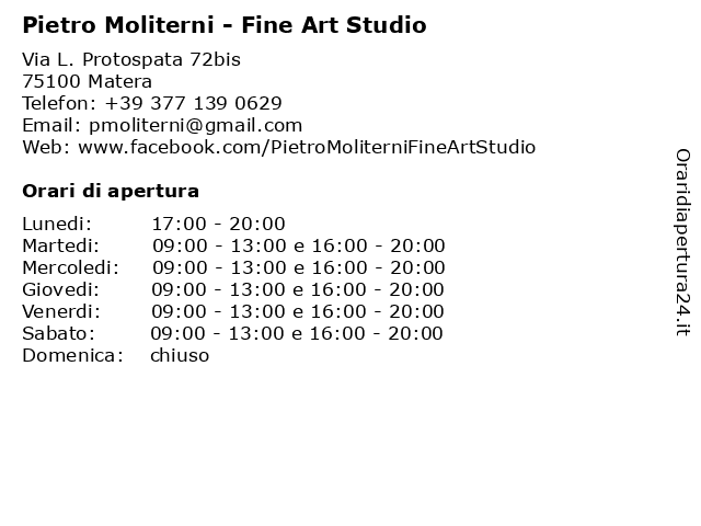 | Venerdi | 09:00-13:00 e 16:00-20:00 |