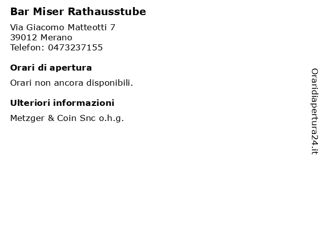 Tag di ricerca per Bar Miser Rathausstube:bar, coin, paninoteche, birrerie, metzger, miser, rathausstube |