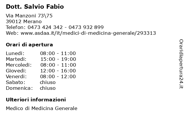 1 Dott.ssa Cantagallo Marilena (distanza: 0,00 km) Via Manzoni 73\75, 39012 Merano (BZ) aldo, ambulatori, cantagallo, circoscrizione, clementi, dott.ssa, dottore, dr., guarigione, marilena, medico di base, medico di famiglia, pediatra, studi, visita 2 Centro Massaggi Orientale Cinese (distanza: 0,07 km) Via Ugo Foscolo 38, 39012 Merano alla coppia e alla famiglia. consulenze alimentari individuali., ayurvedici, centro, cinese, energetici, linfodrenanti, massaggi, massaggi defaticanti, orientale, purificanti, rilassanti, shiatsu, tuina per bambini. consulenze alla persona 3 Dr.ssa De Nuccio Mirta (distanza: 0,40 km) Via delle Corse 23/b, 39012 Merano (BZ) ambulatori, circoscrizione, de, dottore, dr.ssa, guarigione, medico di base, medico di famiglia, mirta, nuccio, pediatra, studi, visita 4 Dr. Flisi Alberto (distanza: 0,46 km) Corso Libertà 75, 39012 Merano (BZ) alberto, ambulatori, circoscrizione, dottore, dr., flisi, guarigione, medico di base, medico di famiglia, pediatra, studi, visita 5 Dr. Hölzl Gerhard (distanza: 0,50 km) Via Garibaldi 31, 39012 Merano (BZ) ambulatori, circoscrizione, dottore, dr., gerhard, guarigione, hölzl, medico di base, medico di famiglia, pediatra, studi, visita 6 Dr. Bonell Wolfgang (distanza: 0,54 km) Via Portici 232, 39012 Merano (BZ) ambulatori, bonell, circoscrizione, dottore, dr., guarigione, medico di base, medico di famiglia, pediatra, studi, visita, wolfgang |