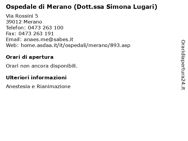 Chiama Ospedale di Merano (Dott.ssa Simona Lugari) | |