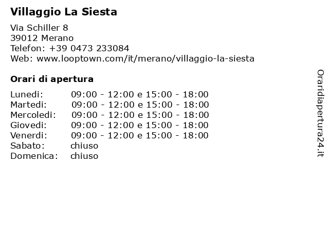 | Venerdi | 09:00-12:00 e 15:00-18:00 |