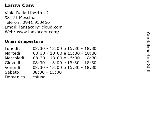 | Lunedi | 08:30-13:00 e 15:30-18:30 |