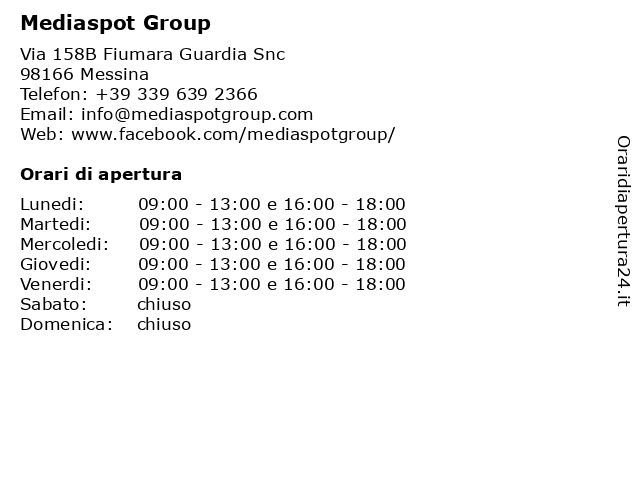 | Venerdi | 09:00-13:00 e 16:00-18:00 |