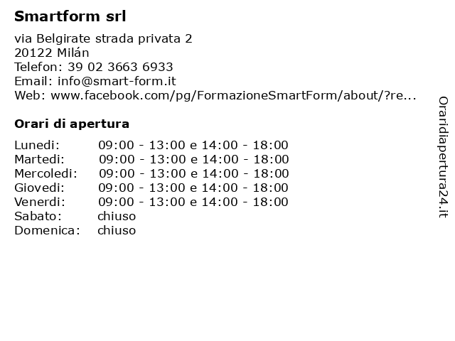 | Martedi | 09:00-13:00 e 14:00-18:00 |