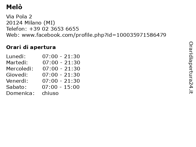 2 Oryza Riso e Risotto (distanza: 0,35 km) Via Volturno 21, 20124 Milano cucina a base di riso, oryza, riso, risotto, ristorante 3 Oryza Riso e Risotto (distanza: 0,35 km) Via Volturno 21, 20124 Milano cucina a base di riso, oryza, riso, risotto, ristorante 4 Brigitte Sushi Corner (distanza: 0,48 km) Via Borsieri 29, 20159 Milano brigitte, corner, cucina, giapponese, ristorante, sushi 5 Qui Si Mangia (distanza: 0,49 km) Via Fara 33, 20124 Milano cucina italiana, mangia, qui, ristorante, si 6 Teatro7 Lab (distanza: 0,58 km) Via Thaon di Revel 7, 20165 Milano bambini, cucina, di cucina, lab, lezioni, per, teatro7 |