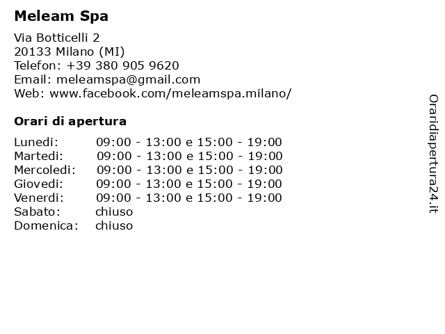 | Lunedi | 09:00-13:00 e 15:00-19:00 |