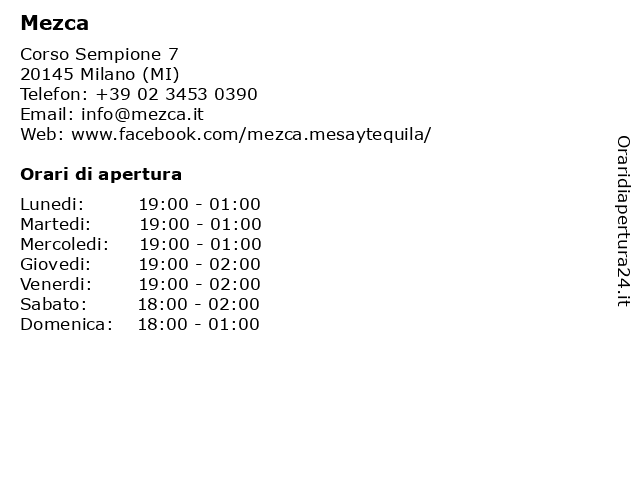 | Giovedi | 19:00-02:00 |
