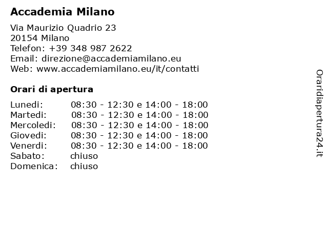 1 AP8 - Accademia Palermo 8 (distanza: 0,97 km) Via Palermo 8, 20121 Milano accademia, ap8, cultura, formazione, palermo, scuola 2 Immobiliare Accademia 60 Srl (distanza: 1,00 km) Via Palermo 1, 20121 Milano 60, accademia, affitto, immob, immobiliare, proprietà 3 Accademia di Belle Arti di Brera (International Relations - Ufficio Erasmus) (distanza: 1,37 km) Via Fiori Oscuri 7, 20121 Milano (international, accademia, accademia di belle arti, arte, arti, belle, brera, di, erasmus), relations, studi superiori, uffici, ufficio, università 4 Accademia di Belle Arti di Brera (Ufficio per il Diritto allo Studio) (distanza: 1,37 km) Via Fiori Oscuri 7, 20121 Milano (ufficio, accademia, accademia di belle arti, allo, arte, arti, belle, brera, di, diritto, il, per, studi superiori, studio), uffici, università 5 Istituto Lombardo Accademia di Scienze e Lettere (Biblioteca) (distanza: 1,40 km) Via Borgonuovo 25, 20121 Milano (biblioteca), accademia, arte, cultura, di, istituto, lettere, lombardo, scienze, turismo, uffici 6 Accademia di Belle Arti di Brera (orario segreteria estivo) (distanza: 1,43 km) Via Brera 28, 20121 Milano (orario, accademia, arti, belle, brera, corsi, di, estivo), imparare, lezioni, segreteria |