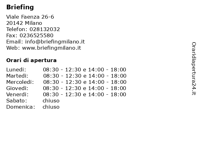 | Venerdi | 08:30-12:30 e 14:00-18:00 |