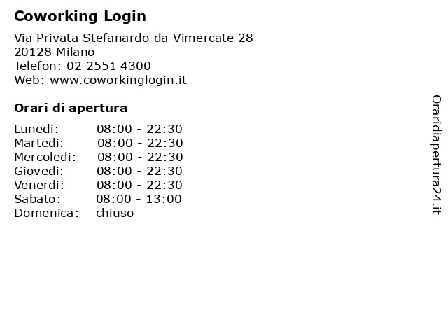 | Lunedi | 08:00-22:30 |