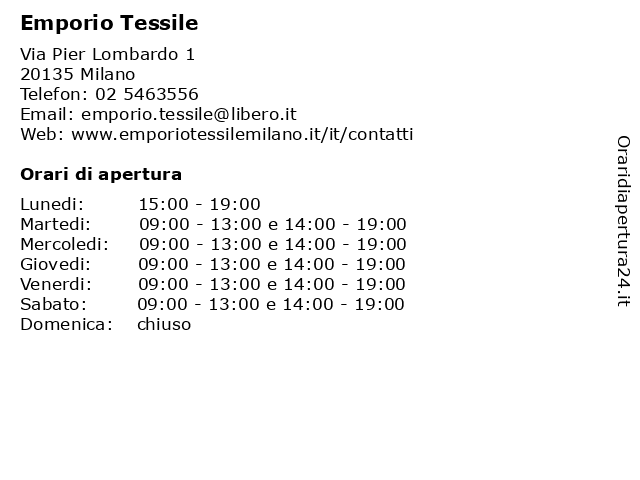 Martedi | 09:00-13:00 e 14:00-19:00 |