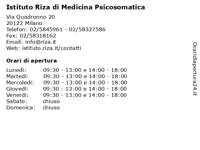 | Lunedi | 09:30-13:00 e 14:00-18:00 |