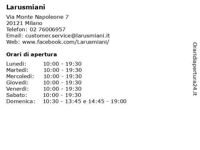 | Domenica | 10:30-13:45 e 14:45-19:00 |