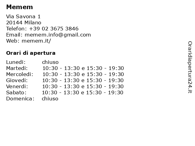 | Martedi | 10:30-13:30 e 15:30-19:30 |