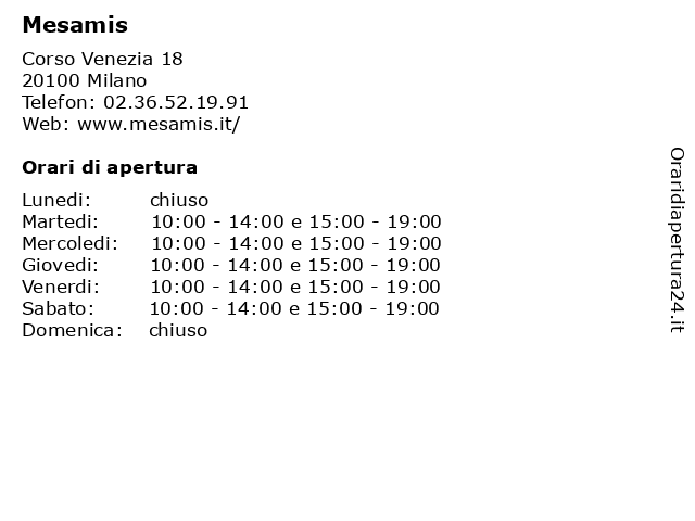 | Sabato | 10:00-14:00 e 15:00-19:00 |