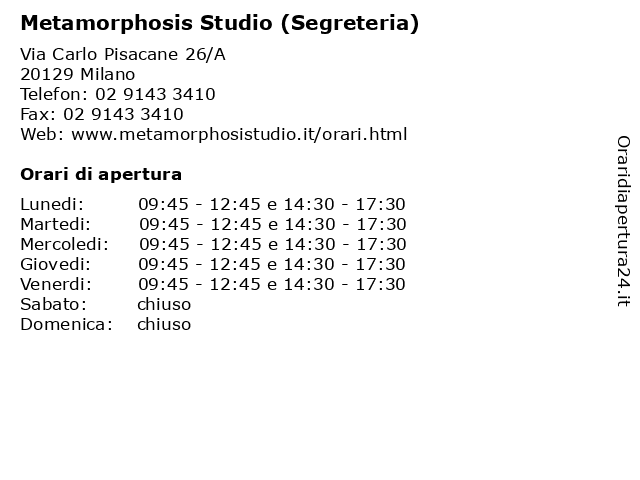 | Lunedi | 09:45-12:45 e 14:30-17:30 |