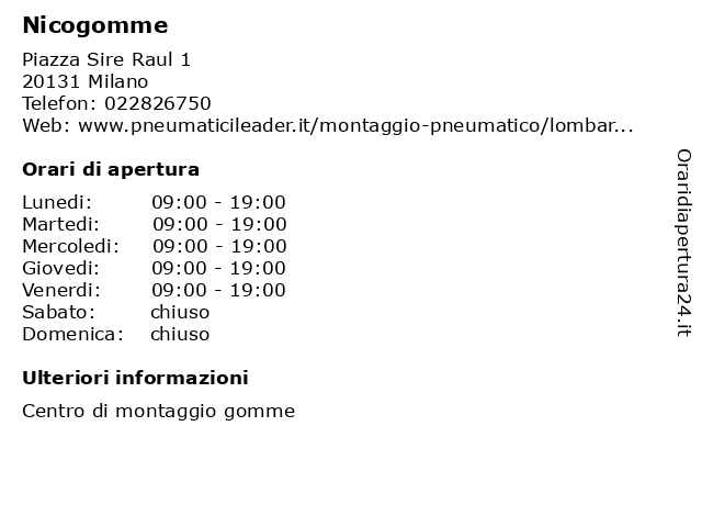 1 Autofficina Vaccaro (distanza: 0,05 km) Piazza Sire Raul 3, 20131 Milano autofficina, carrozzeria, elettrauto, revisioni, servizio gomme, vaccaro 2 Milano Revisioni S.r.l. (distanza: 0,18 km) Via Clitumno 18, 20131 Milano centro montaggio gomme, milano, revisioni, s.r.l., vendita pneumatici 3 Sonia Cars Srl (distanza: 0,37 km) Via Casoretto 45, 20131 Milano cars, centro montaggio gomme, sonia, srl, vendita pneumatici 4 Motauto S.r.l. (distanza: 0,54 km) Via Giuseppe Giacosa 12, 20127 Milano centro montaggio gomme, motauto, s.r.l., vendita pneumatici 5 Autorimessa Bonni (Parcheggio Custodito) (distanza: 0,89 km) Viale Monza 55, 20125 Milano (parcheggio, accessori, assistenza, autorimessa, bonni, custodito), gomme auto, gommista, meccanico, officina, riparazioni 6 Sapa Motor (distanza: 2,53 km) Via Cassanese 11A, 20090 Vimodrone centro montaggio gomme, motor, sapa, vendita pneumatici |