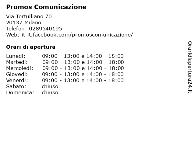 | Martedi | 09:00-13:00 e 14:00-18:00 |