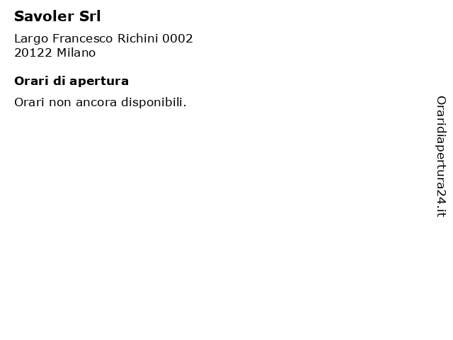 1 Savoler Srl (distanza: 0,10 km) Largo Francesco Richini 2, 20122 Milano gestione, immob, industriali, locaz, savoler |