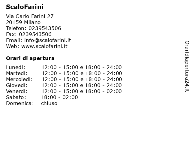 | Lunedi | 12:00-15:00 e 18:00-24:00 |