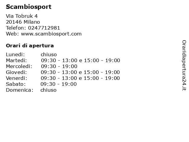 Martedi | 09:30-13:00 e 15:00-19:00 |