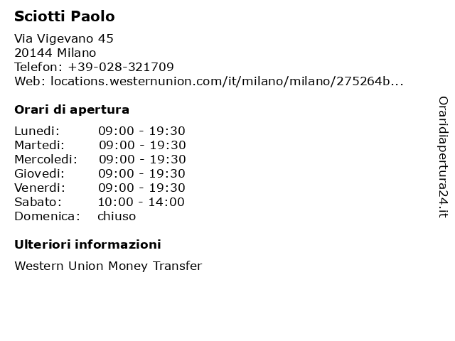 1 San Blas (distanza: 0,08 km) Via Casale 3A, 20144 Milano bar, birrerie, blas, braschi, gian, paninoteche, paolo, san 2 My Best Half Piccola Galleria (distanza: 0,20 km) Via Tortona 16, 20144 Milano best, galleria, half, my, negozio, piccola 3 My Style Parrucchieri di Luciano Seccia (distanza: 0,40 km) Viale Coni Zugna 59, 20144 Milano hairsalon, luciano, my, parrucchieri, seccia, style 4 Architetto Paolo Ferrari (distanza: 0,41 km) Viale Coni Zugna 54, 20144 Milano architetto, ferrari, paolo, studi di architettura 5 Kamal Business Center di Uddin Kamal (distanza: 0,58 km) Via Cesare Da Sesto 1, 20123 Milano banche, business, bussiness, carta prepagata my wu, center, di, incassare denaro, inviare denaro, inviare denaro online, kamal, khan, mobile money transfer, money transfer, moneygram, my wu, pagamenti internazionali, pagamento cash, pagamento online, phone, uddin 6 RUSSO GIANNI (distanza: 0,62 km) Ripa Di Porta Ticinese 93, 20143 Milano carta prepagata my wu, conto bancario, gianni, incassare denaro, inviare denaro online, money transfer, my wu, pagamenti internazionali, pagamento cash, pagamento online, quick pay, ricevere denaro, russo, spedire denaro, trasferimento denaro, trasferimento di denaro a un conto bancario |