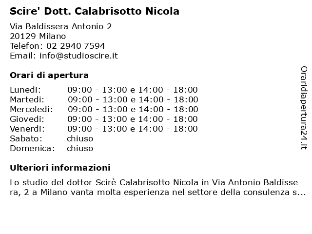 Lunedi | 09:00-13:00 e 14:00-18:00 |