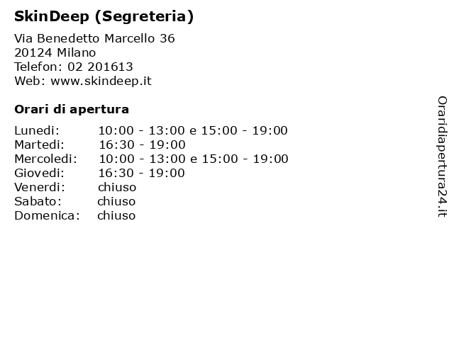 Lunedi | 10:00-13:00 e 15:00-19:00 |
