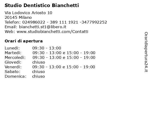 Martedi | 09:30-13:00 e 15:00-19:00 |