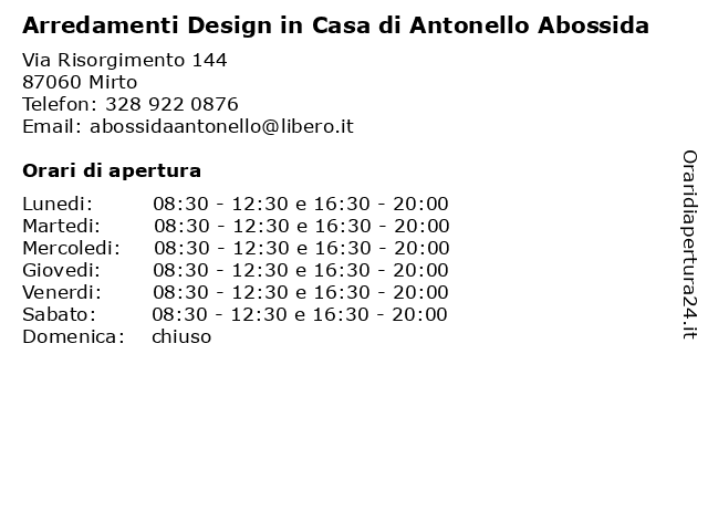 | Martedi | 08:30-12:30 e 16:30-20:00 |