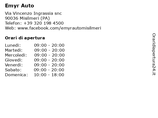 1 Emyr Vetri (distanza: 0,86 km) Via Roma 287, 90036 Misilmeri edilizia, emyr, impresa edile, ingegneri, servizi per le aziende, vetreria, vetri 3 Pitstop Centro Revisione Gomme e Autolavaggio (distanza: 0,22 km) Via Contrada Tramontana 5, 90036 Misilmeri (PA) autolavaggio, belleza, centro, dream, gomme, hair, parrucchieri, pitstop, revisione, salud, spa 4 Centro Revisione e Officina Meccanica Nino Sole (distanza: 0,23 km) Corso Vittorio Emanuele 551, 90036 Misilmeri (PA) belleza, centro, dream, hair, meccanica, nino, officina, parrucchieri, revisione, salud, sole, spa 5 Parafarmacia Torremuzza (distanza: 12,16 km) Via Torremuzza 17, 90133 Palermo belleza, cosmética, erboristeria, farmacia, parafarmacia, personal, torremuzza 6 Parafarmacia XX Settembre (distanza: 13,90 km) Via XX Settembre 15, 90141 Palermo belleza, cosmética, erboristeria, farmacia, parafarmacia, personal, settembre, xx |