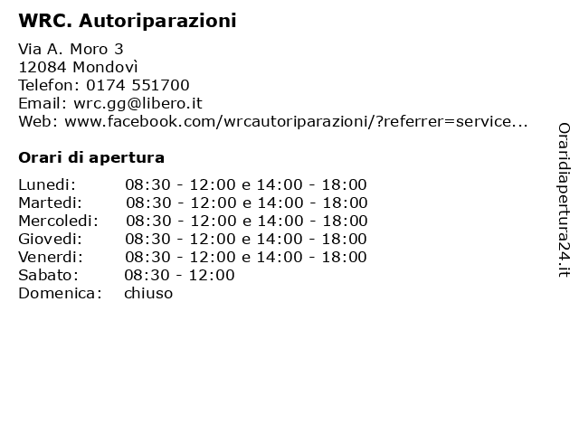 Lunedi | 08:30-12:00 e 14:00-18:00 |