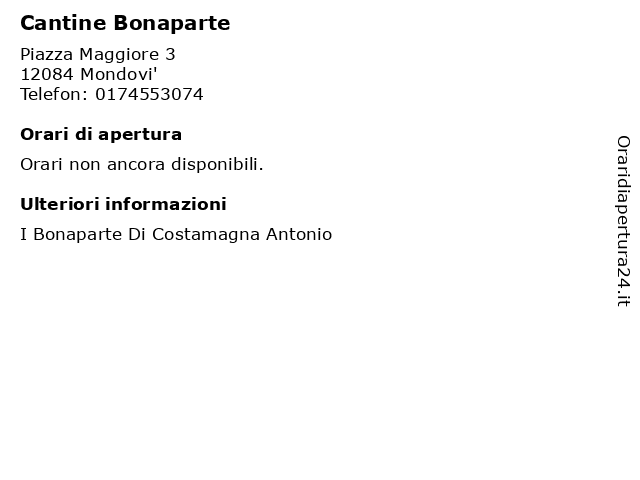 1 Cantine Bonaparte (distanza: 1,10 km) Piazza Maggiore snc, 12084 Mondově bonaparte, cantine, gastronomia, ristorante 2 Museo Bonaparte (distanza: 11,35 km) Piazza Vittorio Veneto 1, 12070 Mombasiglio (Cn) biblioteca, bonaparte, libri, musei, museo 3 Cantine Manfredi (distanza: 15,49 km) Via Torino 15, 12060 Farigliano (CN) cantine, ingrosso, manfredi 4 Adriana Shop - Sgombero Cantine (distanza: 19,52 km) Via Nazario Sauro 37/a-b, 12045 Fossano adriana, cantine, ditta di traslochi, ditta specializzata in tinteggiatura, progettisti di giardini, servizi per la lotta antiparassitaria, sgombero, shop 5 Costamagna Domenico e c. Sas (distanza: 0,77 km) Piazza Ellero 21, 12084 Mondovi' agenti, assicuraz, costamagna, domenico, serv 6 Costamagna Avv. Raffaella (distanza: 0,96 km) Via Fratelli G. E G. Durando 2/h, 12084 Mondově avv., costamagna, raffaella |