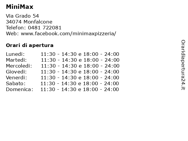 Lunedi | 11:30-14:30 e 18:00-24:00 |