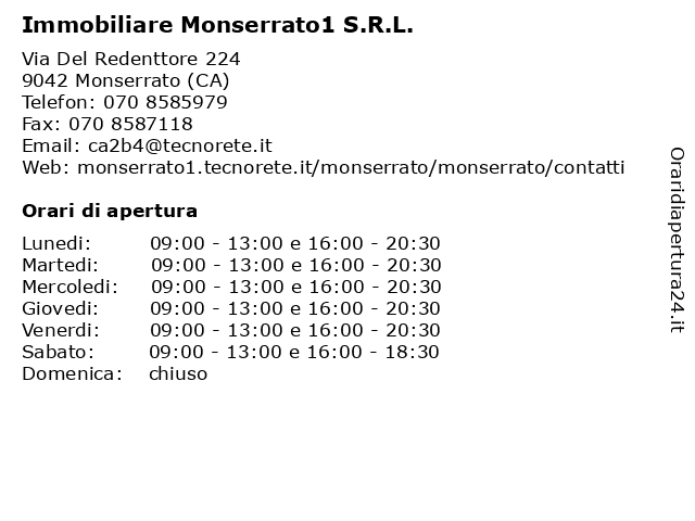 | Lunedi | 09:00-13:00 e 16:00-20:30 |