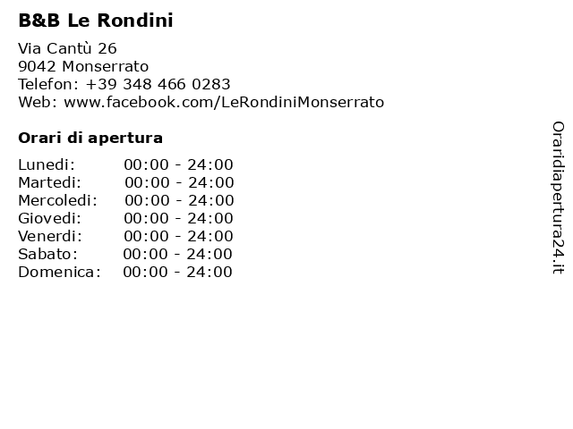 | Lunedi | 00:00-24:00 |