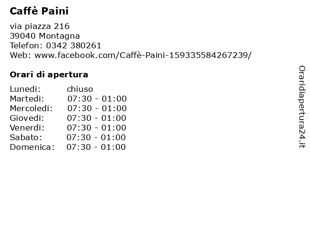 | Sabato | 07:30-01:00 |