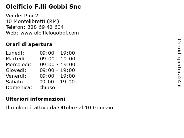 | Lunedi | 09:00-19:00 |