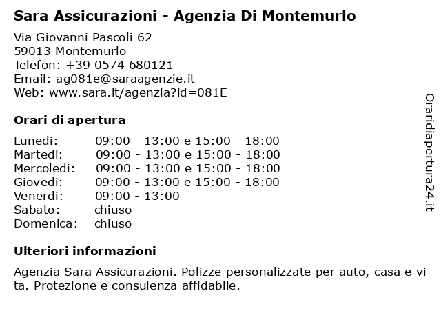 Tag di ricerca per Sara Assicurazioni - Agenzia Di Montemurlo:agenzia, assicurazioni, sara, montemurlo, sara assicurazioni, agenzia assicurazioni montemurlo, preventivo assicurazione montemurlo |