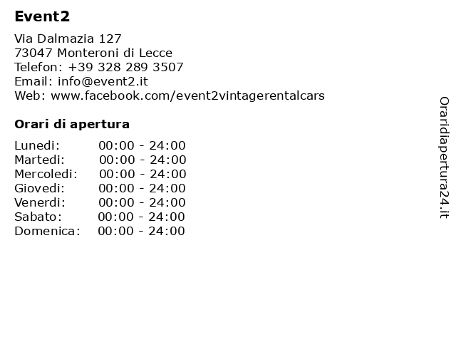 | Lunedi | 00:00-24:00 |
