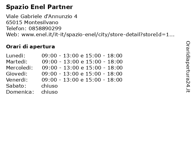 1 Spazio Enel Partner (distanza: 1,97 km) Corso Umberto Iº 430, 65015 Montesilvano allacci, contratti, enel, gas, gasenergia, luce, partner, spazio 2 Spazio Enel Partner (distanza: 6,20 km) Via del Santuario 125/3, 65124 Pescara allacci, elettricità, enel, gas, partner, prime attivazioni, punto, spazio, volture 3 Spazio Enel Partner (distanza: 7,47 km) Viale Europa 48, 65010 Spoltore clienti, enel, global, gusto, partner, qualità, servizi, solutions, spazio, srls 4 Spazio Enel Partner (distanza: 16,80 km) Viale Benedetto Croce 235, 66013 Chieti (CH) enel, fibra, fotovoltaico, luce e gas, mobilità elettrica, partner, spazio 5 Spazio Enel Partner (distanza: 17,07 km) Via Nazionale Adriatica 58, 66023 Francavilla al Mare assistenza, bellante, centro, consulenze, contratti, di, enel, fausto, gas, luce, partner, servizi, somministrazione, spazio 6 Spazio Enel Partner (distanza: 18,45 km) Via Marco Vezio Marcello 6B, 66100 Chieti (negozio, elettrico, enel, energia, gas, luce, nazionale, partner, partner), servizio, spazio |