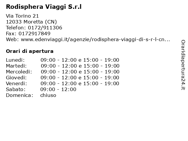 | Venerdi | 09:00-12:00 e 15:00-19:00 |
