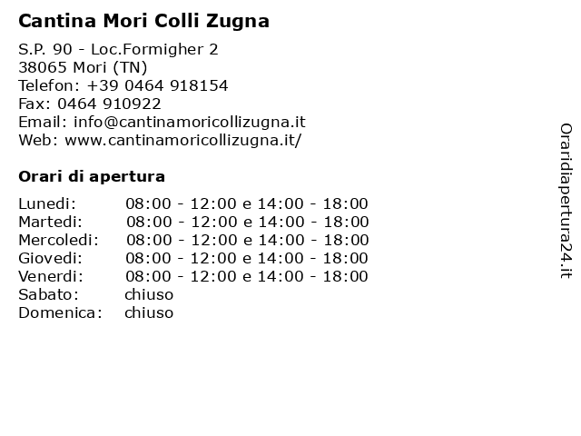 | Lunedi | 08:00-12:00 e 14:00-18:00 |