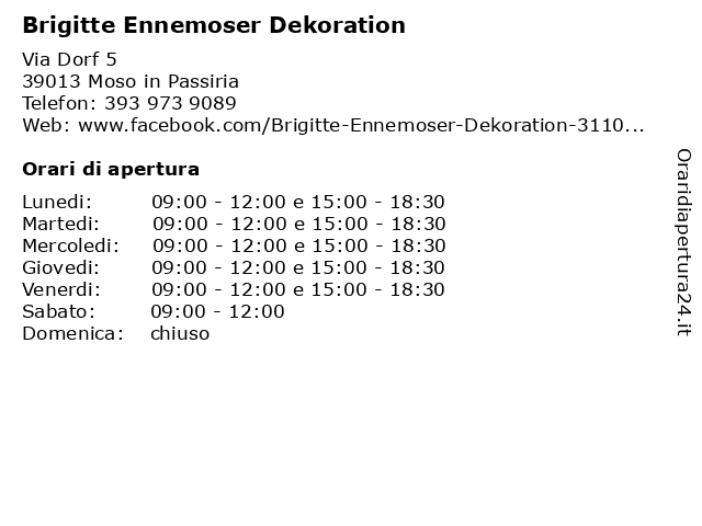 | Lunedi | 09:00-12:00 e 15:00-18:30 |