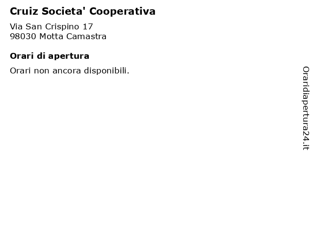 1 Cruiz Societa' Cooperativa (distanza: 0,19 km) Piazza Annunziata 2, 98030 Motta Camastra bar, birrerie, cooperativa, cruiz, paninoteche, societa 2 Siciliana Erbe Officinali Piccola Societa' Cooperativa a r.l. (distanza: 0,08 km) Via Vittorio Emanuele 25, 98030 Motta Camastra cooperativa, edicole, erbe, giornalai, officinali, piccola, siciliana, societa 3 Servizi Per L'agricoltura Di Fazio Santino Società Cooperativa (distanza: 8,97 km) Via Alcide De Gasperi , 95017 Piedimonte Etneo cooperativa, fazio, l'agricoltura, santino, servizi, società 4 Bar Costanzo (distanza: 9,90 km) Via Xx Giugno 1950 26, 98050 Fondachelli Fantina bar, birrerie, cooperativa, costanzo, paninoteche, societa 5 Torrisi Angelo (distanza: 15,04 km) Via Piedimonte 2, 95016 Mascali angelo, coloniali, drogherie, torrisi 6 Macelleria Per Passione e Tradizione (distanza: 17,07 km) Via Vittorio Emanuele 15, 95010 Sant'Alfio coloniali, drogherie, giovanni, macelleria, passione, tradizione, trovato |